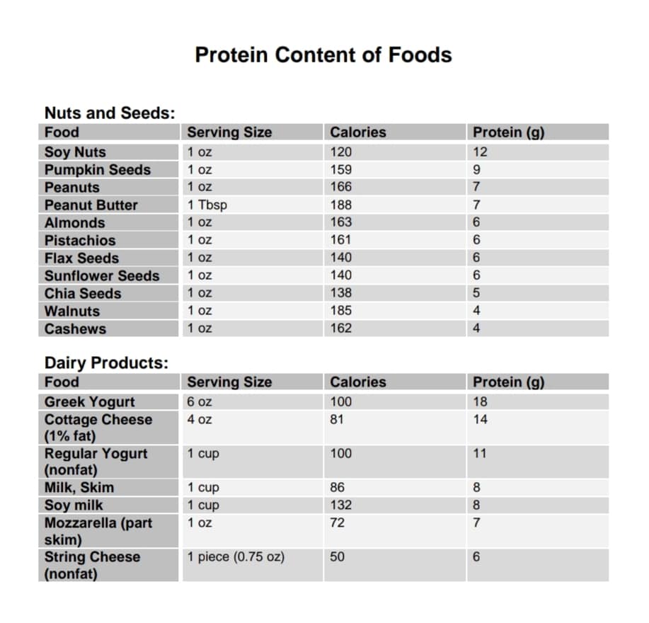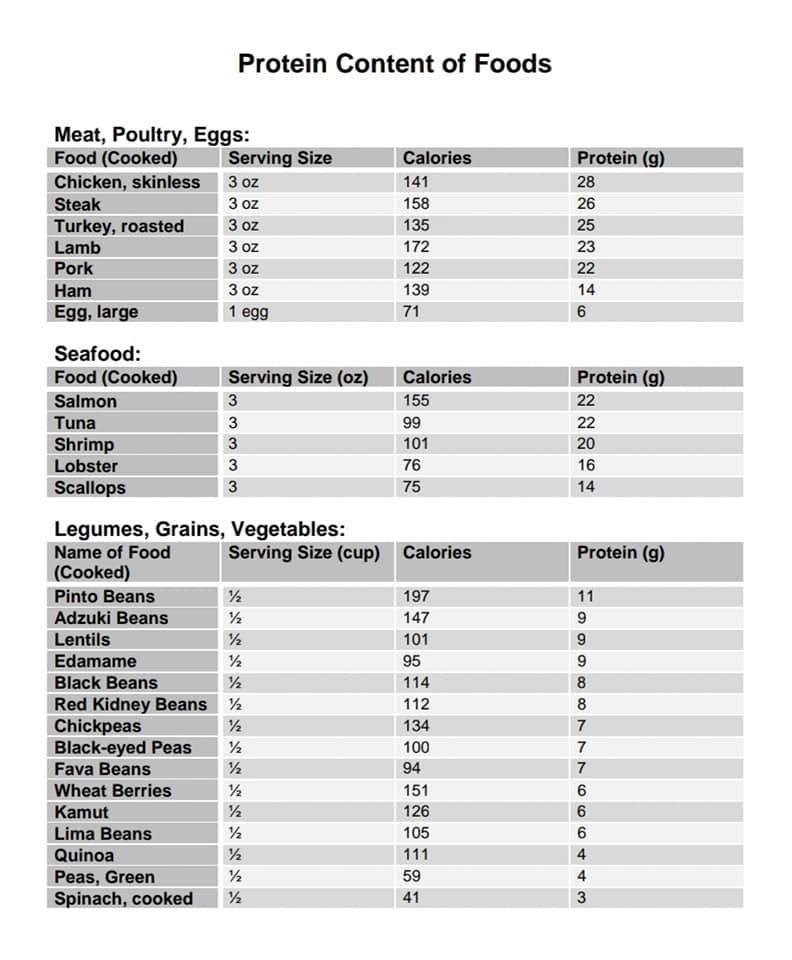 Here are a couple of lists to help you get your head around the foods that contain protein and how much they contain. Note: 3oz = 85g, 1oz = 28g, 1 cup = 237ml.